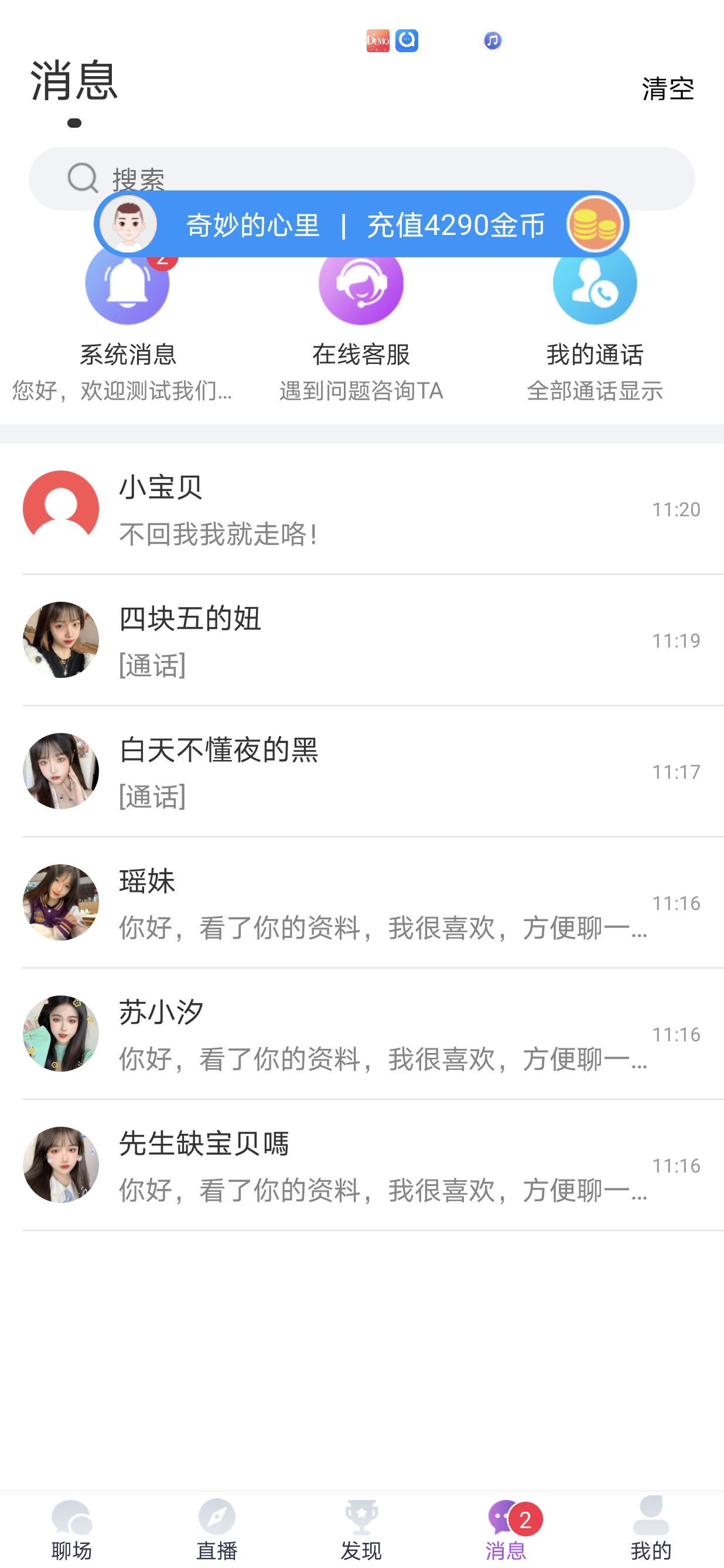同城一对一 一对多语音视频直播带朋友圈短视频机器人打招呼语音聊天室视频聊天室仿爱聊,直播PK,多人聊天室。后台服务端:Java Android:Java iOS:obje-ctive-C