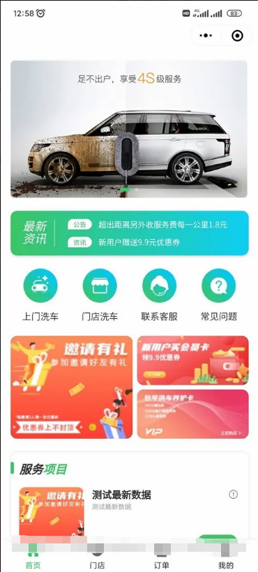 洗车预约服务小程序同城洗车上门洗车门店优惠券会员预约洗车程序