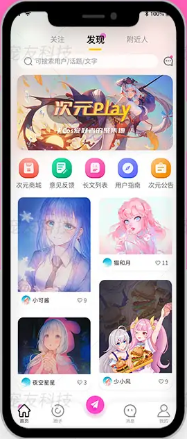 本平台是一套基于二次元社区的模板,可根据需求做调整模板换内容。可做宠物社区、游戏社交、内容论坛等等应用