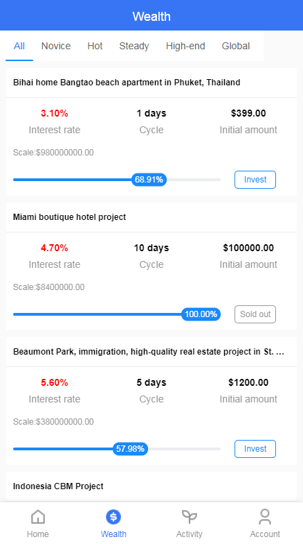 多语言项目投资平台,不限项目类型,已集成微信扫码、支付宝扫码、银行卡转账、加密货币支付方式,可另外对接指定国家在线支付/代付;