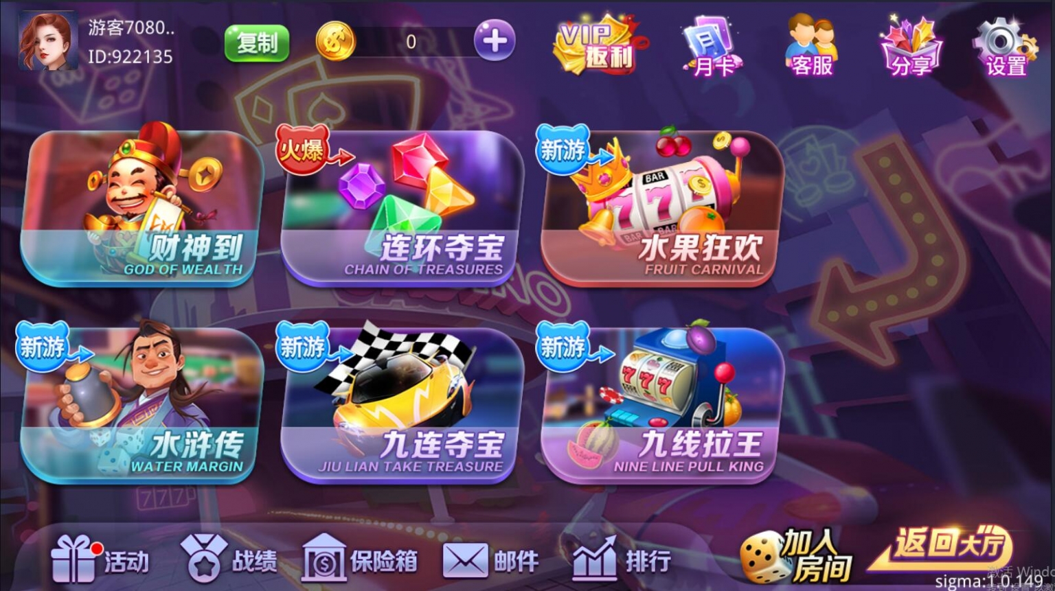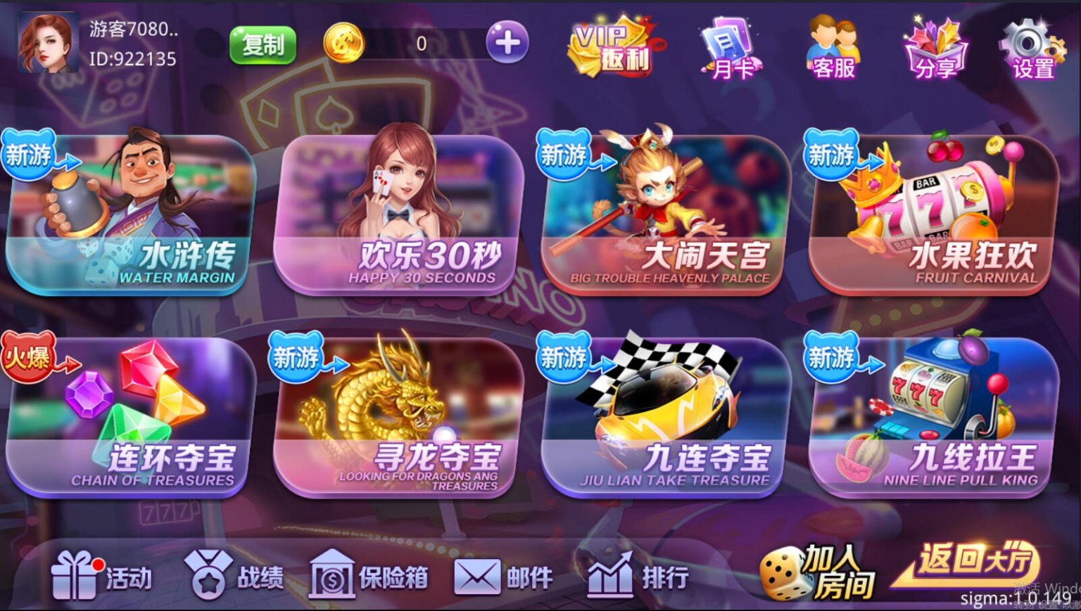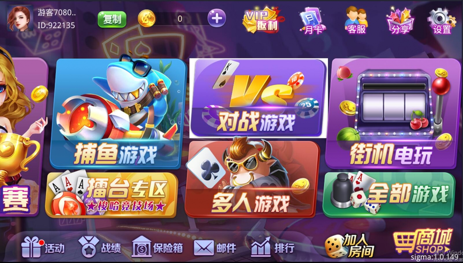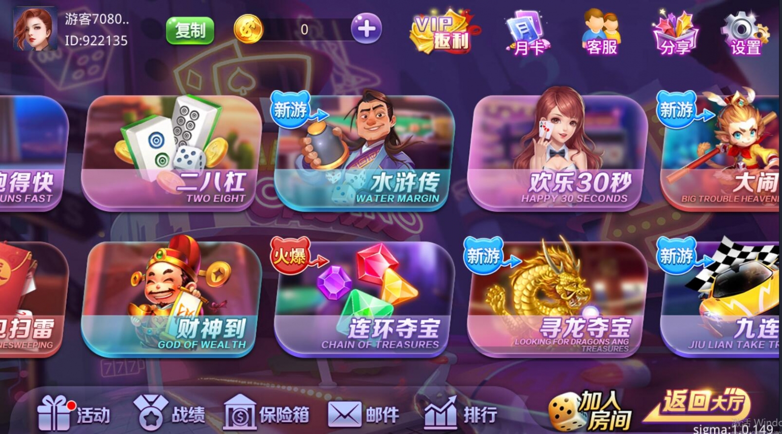 双模式,房卡+金币的类型。游戏比较多,具体看图吧