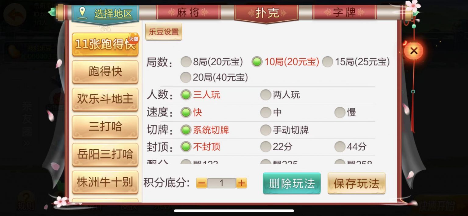 棋牌房卡大合集 湖南 岳阳等玩法。带机器人-带控,可定制其他地方玩法