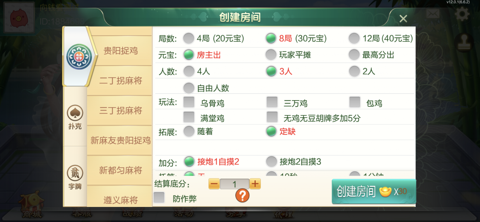 棋牌房卡大合集 贵州玩法。带机器人-带控,可定制其他地方玩法