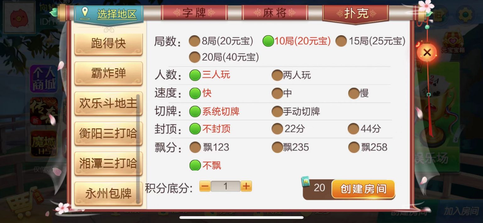 棋牌房卡大合集 湖南玩法,湘潭-永州-衡阳-娄底-怀化-邵阳。带控 外外链,可定制其他地方玩法