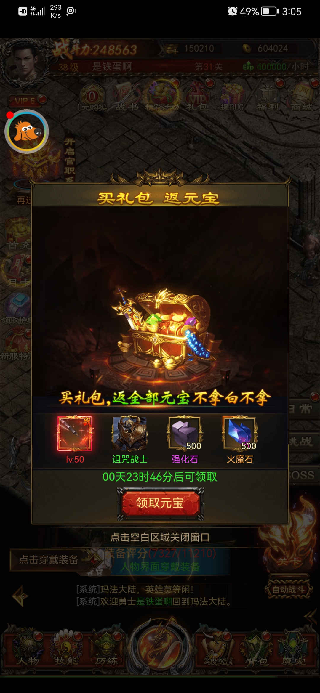 传奇H5,时装翅膀称号玩法活动丰富。H5页面手机浏览器打开就可玩,无需下载,可植入到任何区块链、直播、交易所、即时通讯等软件APP内。也可打包成安卓苹果双端APP